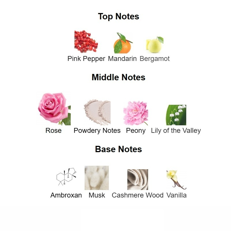 Eladaria by Creed is a Floral fragrance for women. This is a new fragrance. Eladaria was launched in 2025. Top notes are Pink Pepper, Mandarin and Bergamot; middle notes are Rose, Powdery Notes, Peony and Lily of the Valley; base notes are Ambroxan, Musk, Cashmere Wood and Vanilla.