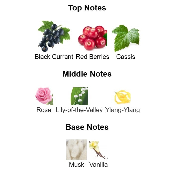 Top Notes: Raspberry, Blackcurrant, Cassis